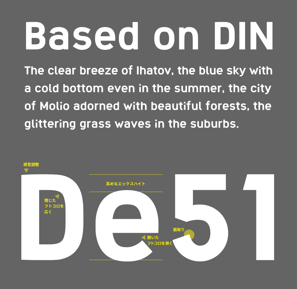 ドイツの工業規格書体「DIN」をベースにした欧文フォントです。